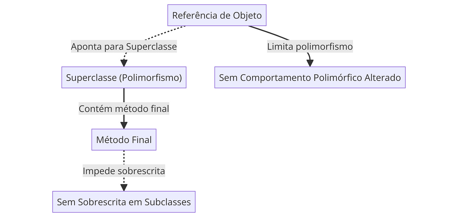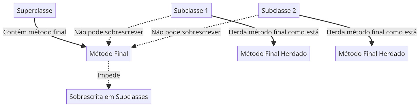 , ele não pode ser sobrescrito por nenhuma subclasse. Isso é frequentemente utilizado por programadores para "travar" a implementação de um método específico, garantindo que sua lógica permaneça consistente e não seja alterada, mesmo quando a classe é estendida.
