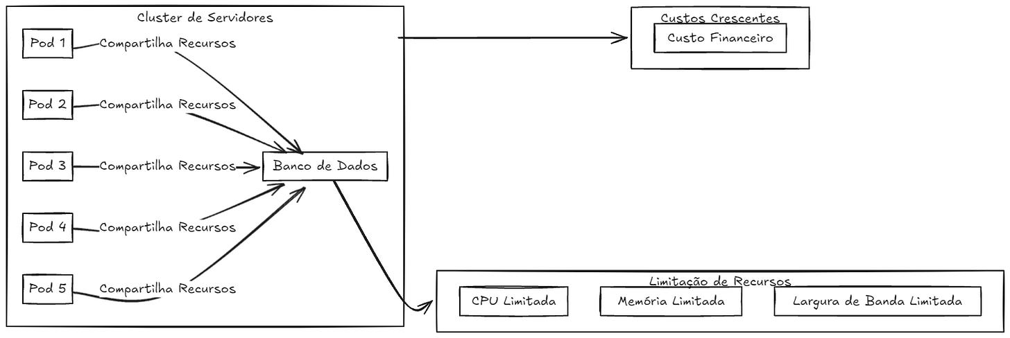 A contenção de recursos é outro problema crítico. Quando você escala horizontalmente, todos os pods ou instâncias precisam acessar recursos compartilhados, como um banco de dados central, um serviço de cache, ou até mesmo a rede. À medida que o número de pods aumenta, todos eles competem por esses recursos.