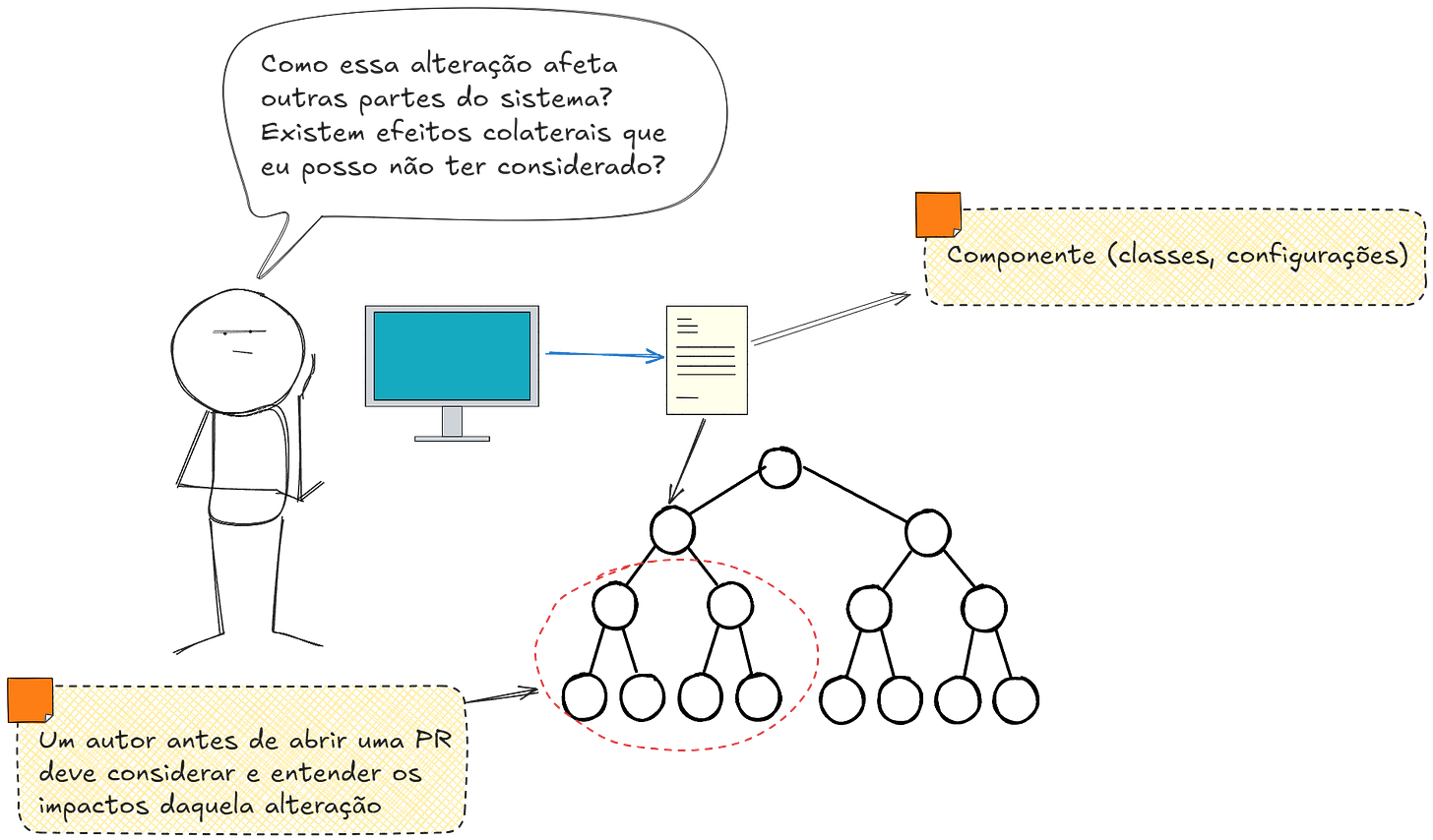 Pense em como a mudança interage com outras partes do sistema, e se há áreas que podem ser afetadas.