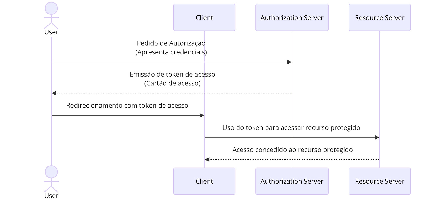 Da mesma forma, o OAuth 2.0, por si só, não autentica quem você é; ele apenas garante que o cliente (um aplicativo ou serviço) tem permissão para acessar certos recursos em seu nome. Muitos confundem esse processo porque a obtenção do token de acesso envolve uma interação que pode parecer autenticação. No entanto, OAuth é um protocolo de autorização, não de autenticação.