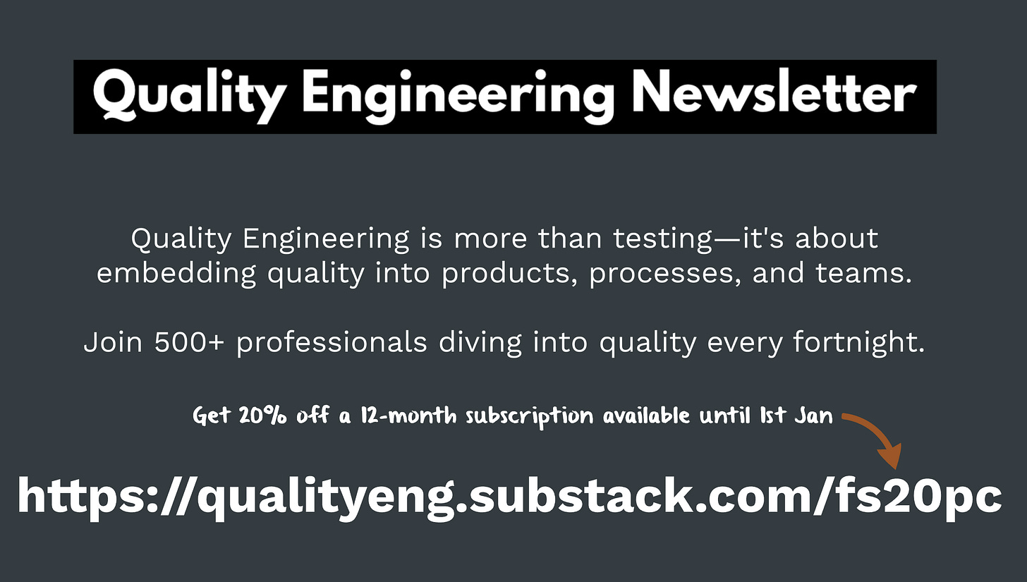 Quality Engineering Newsletter is a reader-supported publication. To receive new posts and support my work, consider becoming a free or paid subscriber.