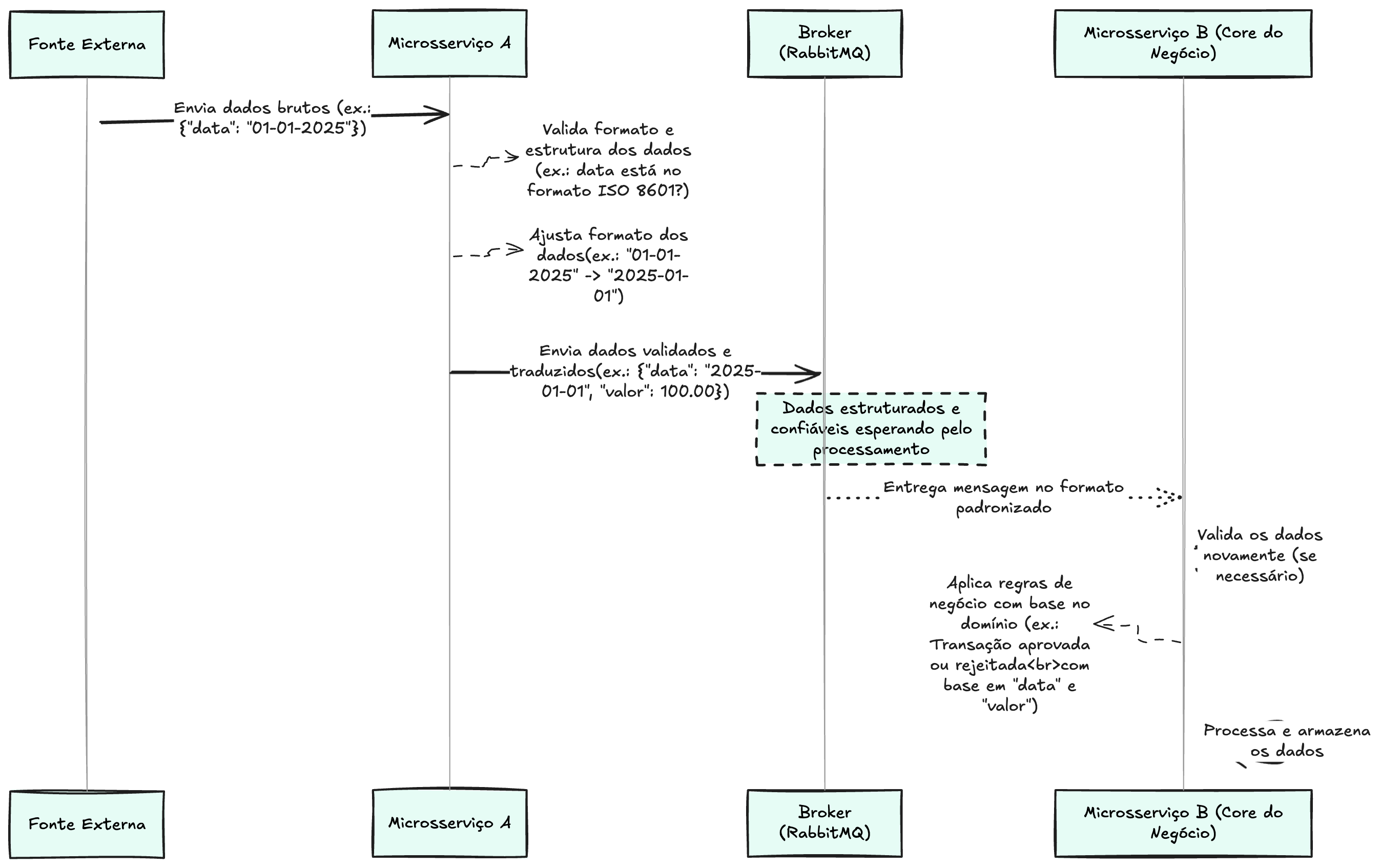 O Serviço B não deve precisar entender regras ou formatos externos. Ele deve receber informações claras e consistentes.