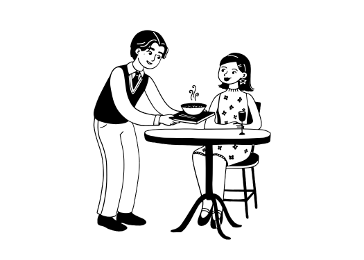 O garçom recebe os pedidos, os organiza e os comunica à cozinha no formato certo. Se um cliente pedir algo que não existe no cardápio, o garçom avisa imediatamente — sem precisar incomodar o chef.