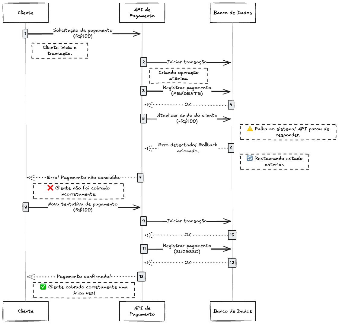 ✔ Vantagem: Mesmo que uma falha aconteça, o sistema pode se recuperar sem deixar rastros quebrados.