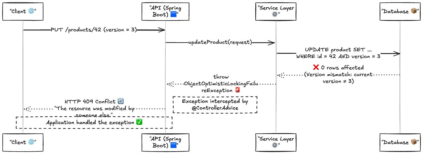 • Se nenhuma linha for afetada, ele lança OptimisticLockException