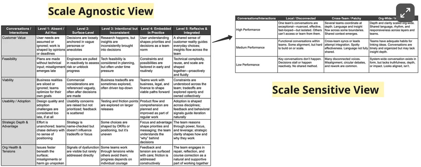 The quality of your conversations shapes the quality of your systems. This table of conversation types from John Cutler is a powerful tool for assessing how your team communicates and collaborates. Use it in your next retro to look at: