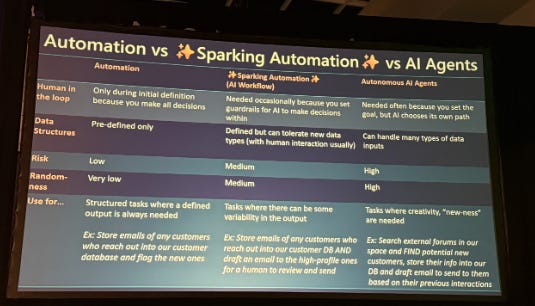 Dona shared a solid perspective on what agentic AI really means. A lot of what people label as agentic AI is just automation, like getting a new recipe emailed every Monday. True agentic AI can reason, adapt, and use automation to achieve specific goals.
