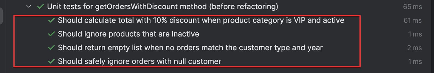 A primeira refatoração é, muitas vezes, escrever os testes que garantem o comportamento atual antes de qualquer outra mudança.