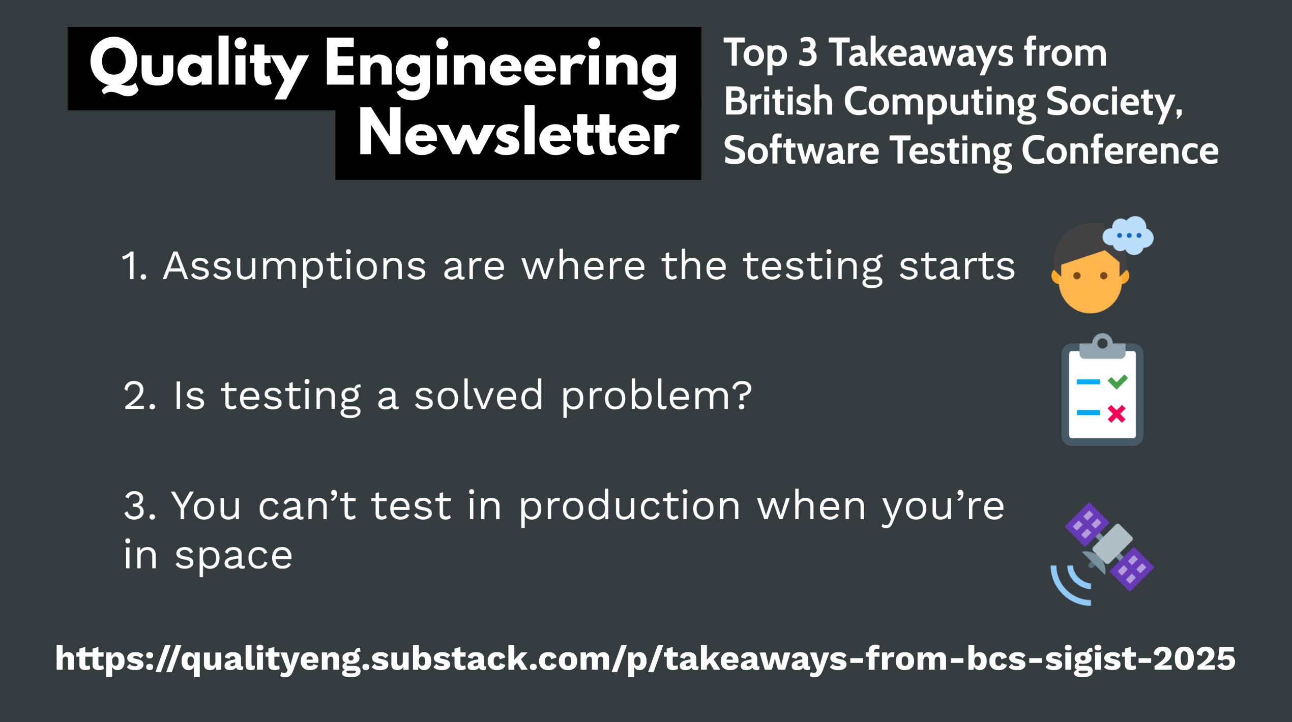 If you're curious about testing, AI, or how quality engineering is evolving, I’d definitely recommend attending the next SIGiST event. You can find more information about them here at BCS SIGiST. If you want to dive deeper into any of the above talks, check out my notes from the BCS SIGiST Summer Conference.
