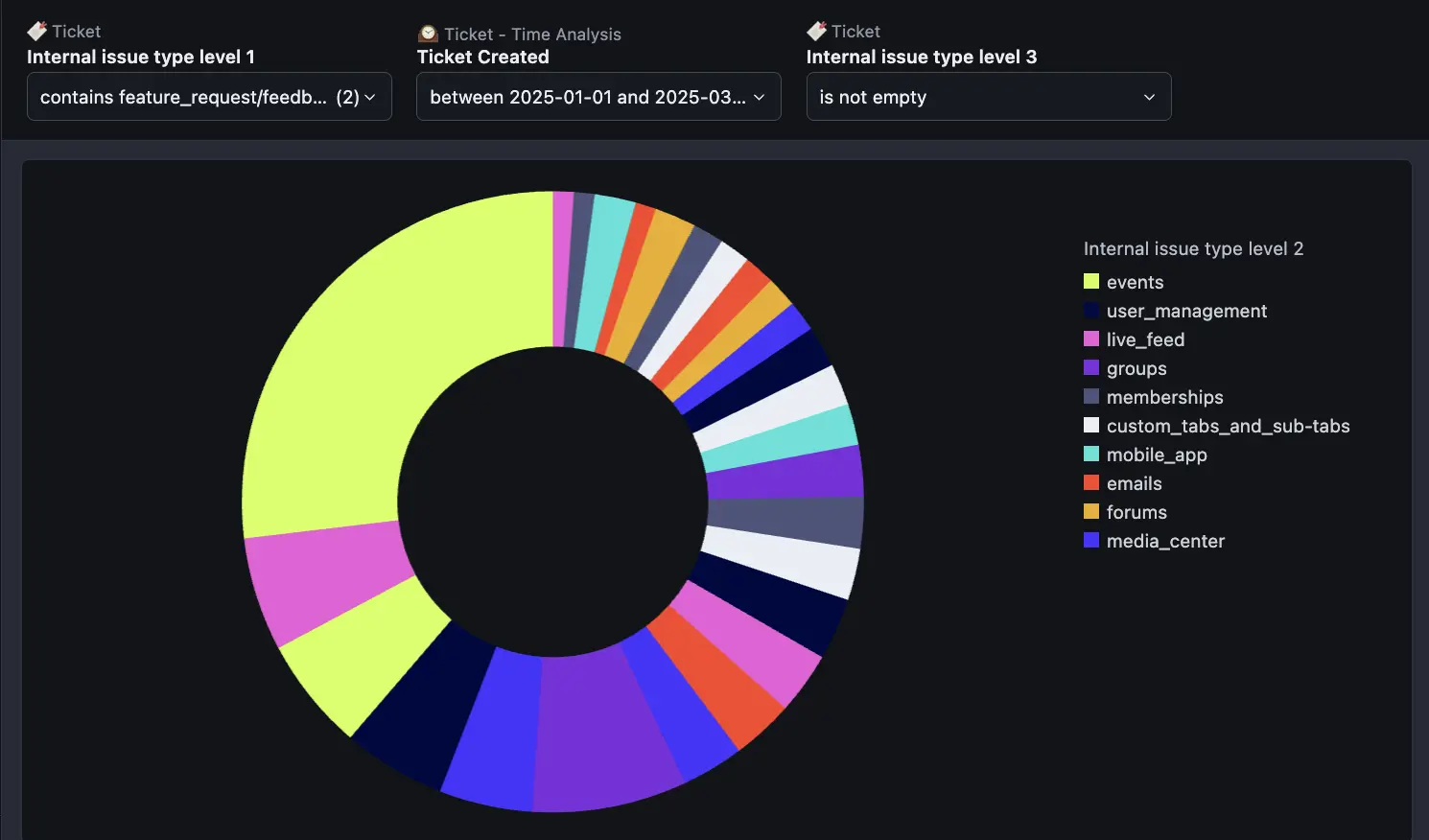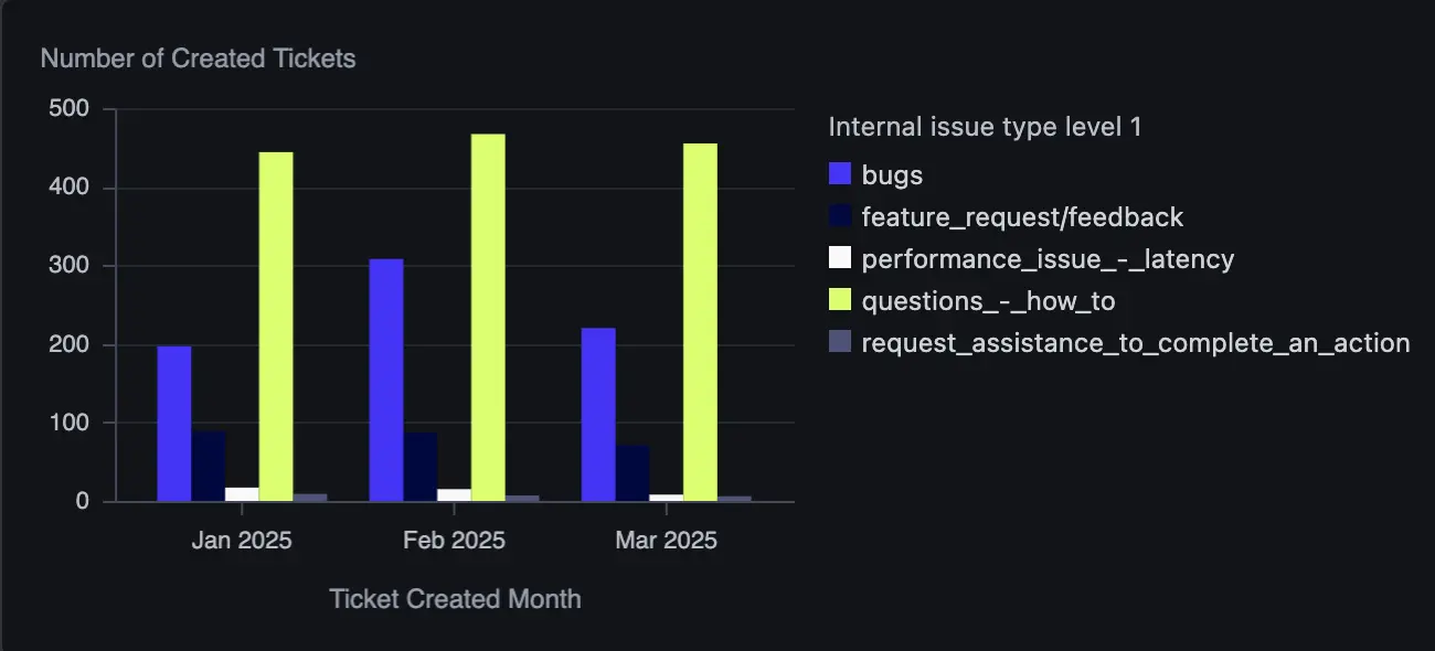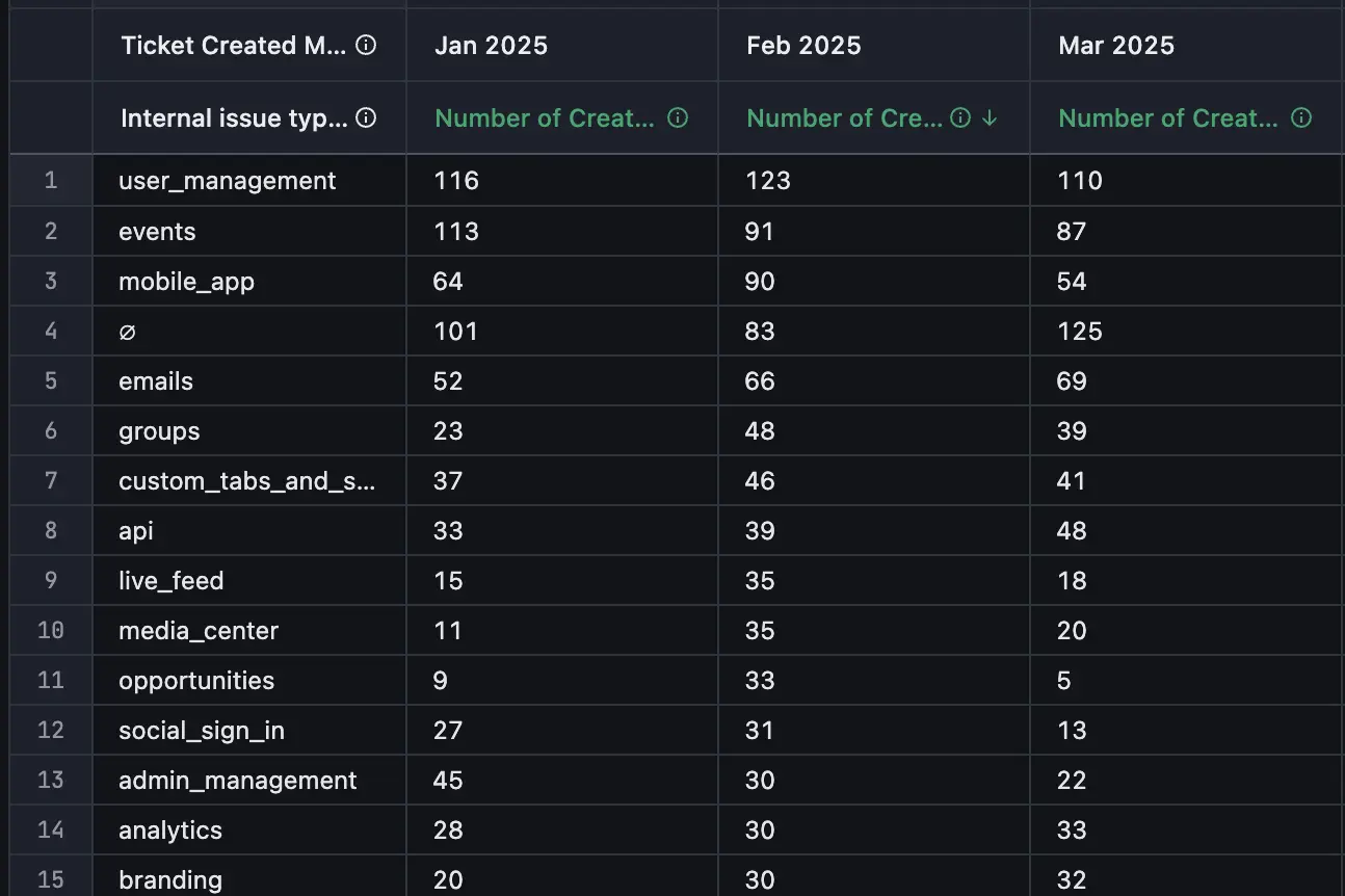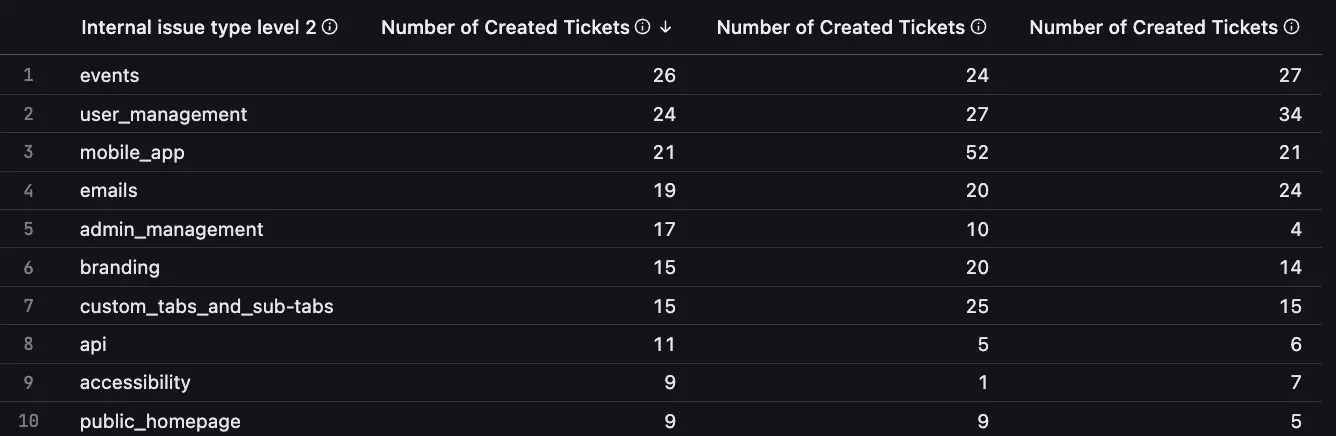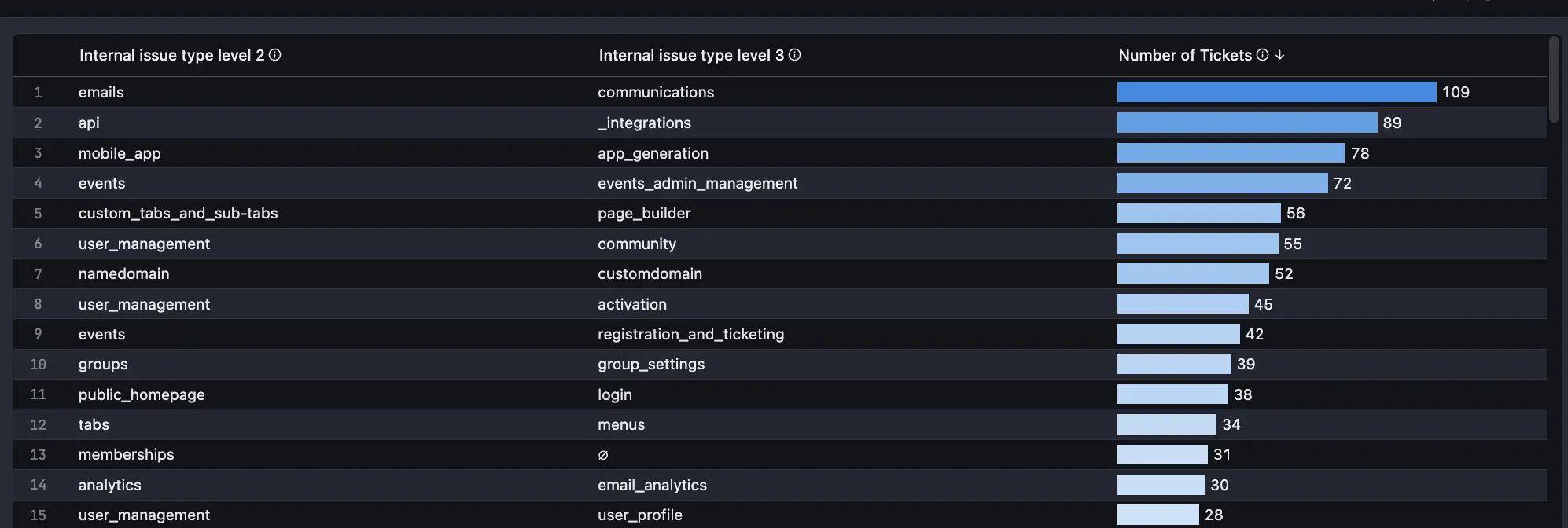 When filtering client questions via level 3, we can see that during this quarter, the hottest topics were email sending, API integrations and mobile app generation.